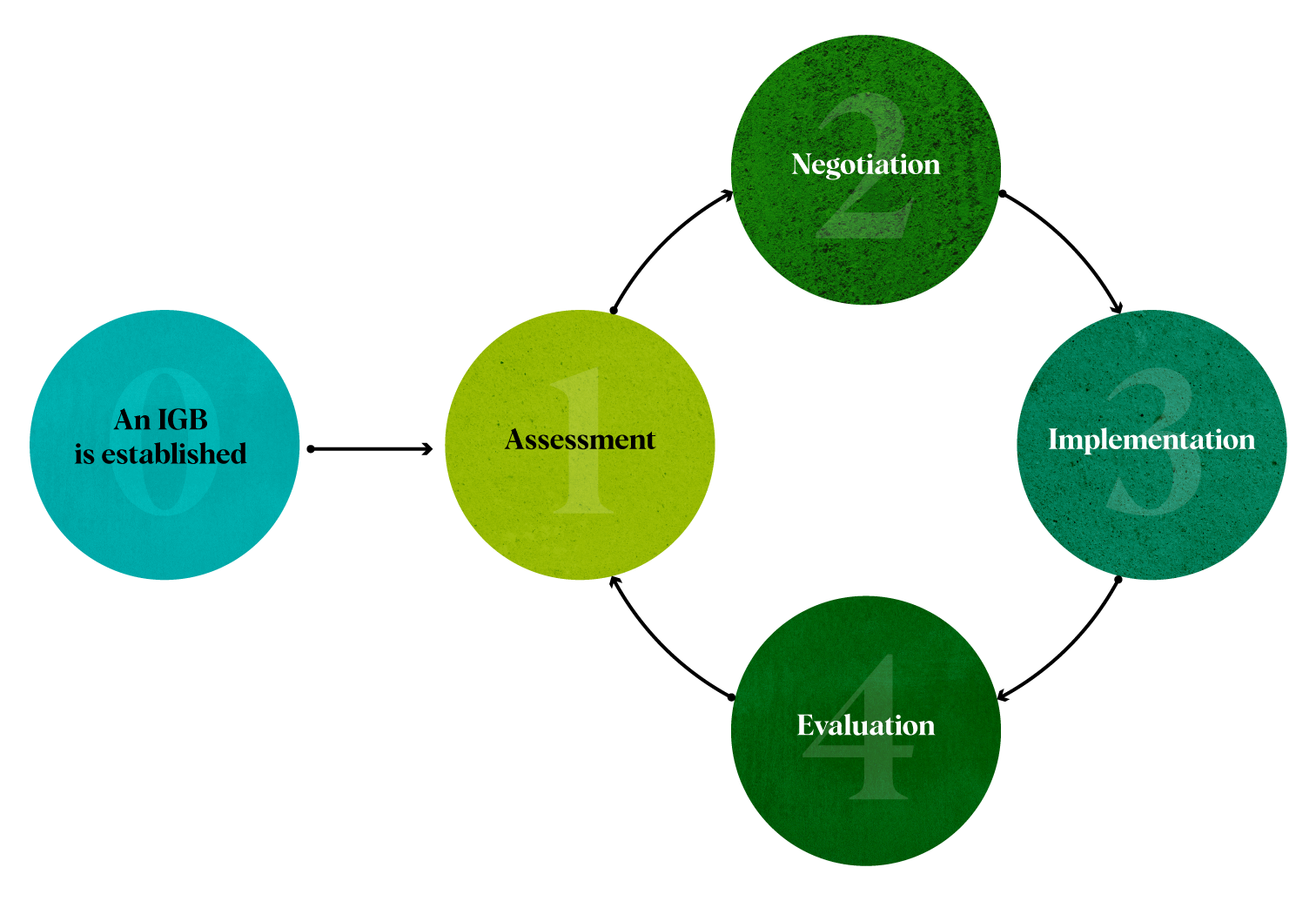 Periodic evaluation or review of an Arrangement is beneficial to ensure that it remains effective, relevant, and responsive to changes in the environment as well as the growing capacity and interest of the IGB. A review is even more relevant in the context of phased implementation of an Arrangement, as discussed further in the section “Exploring a phased approach to implementation”, allowing time for all parties to build capacity, learn from experience, identify unintended consequences, and make data-informed adjustments that improve the Arrangement over time, giving more responsibility and agency to an IGB as readiness shifts. Timelines for the review of an Arrangement can vary and could be negotiated in the development of the Arrangement; a review period of 5 years could be considered to allow time for implementation prior to evaluation.